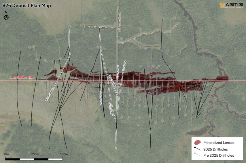 Jonathon Deluce, CEO of Abitibi Metals, commented: “These Phase 3 results provide confirmation of the strength, continuity, and scale of the high-grade Western Down-Plunge extension at B26. The consistency of these intercepts continues to exceed expectations and further reinforces our confidence in the significant growth potential of this highly valuable zone. With strong momentum now established, our Phase 4 drill program is underway and fully focused on this priority area as a driver of value creation. Two drill rigs are currently active, with a third scheduled to come online in February, as we execute a targeted 40,000-metre drill campaign designed to rapidly expand the deposit.”